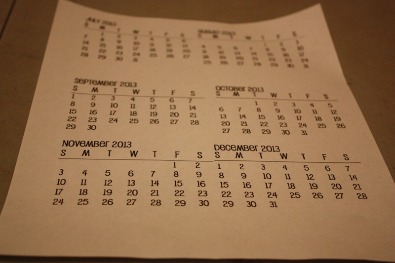 I was trying to think of a fun little gift to give out this new years.....meet....the mini calendar. I found a free 2013 calendar online, and I printed it onto cardstock.